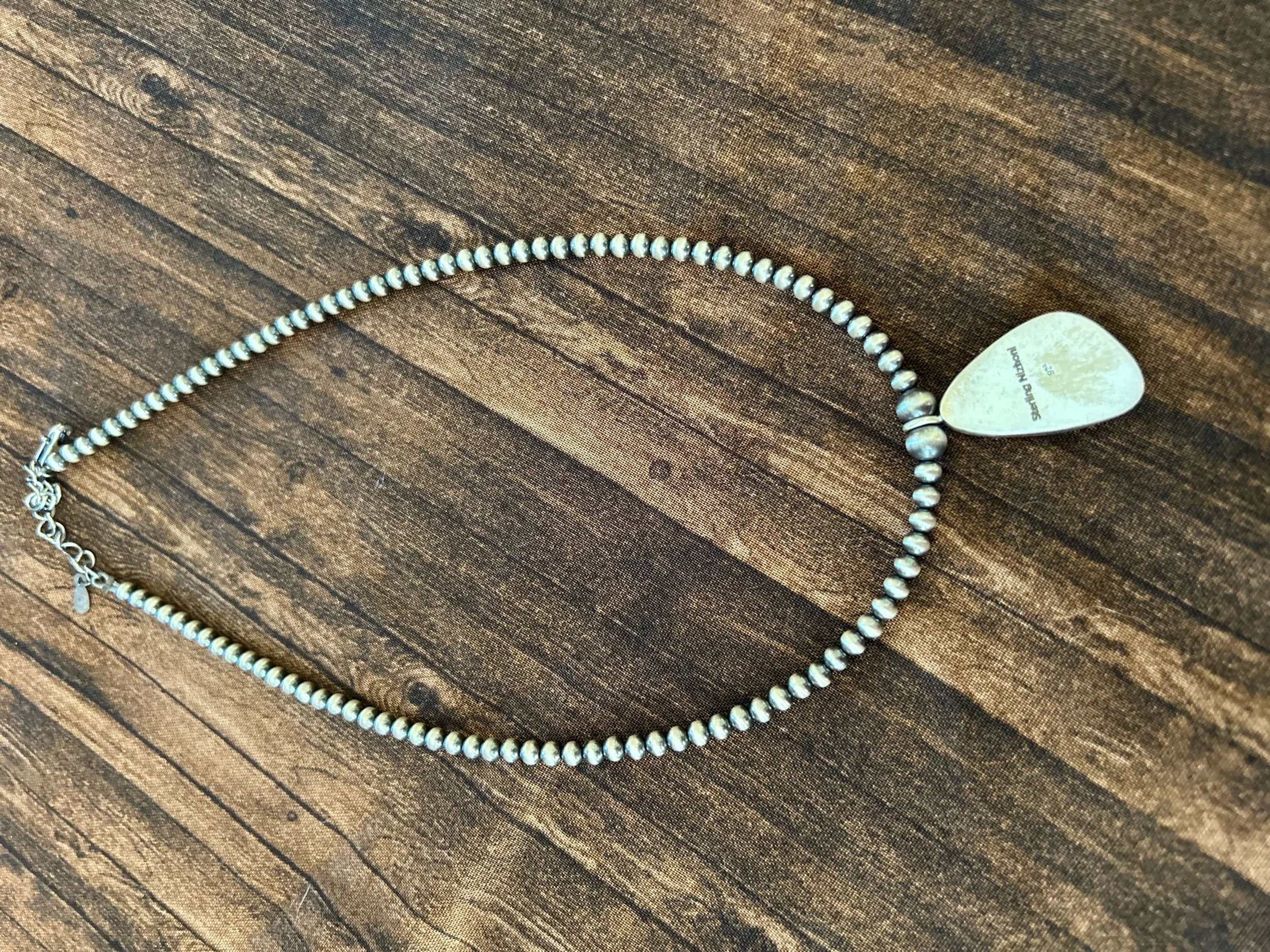 Sterling Silver Golden Hill Turquoise Beaded Necklace measures length 16 inches with 2 inch extension, Bead size 4-6MM.