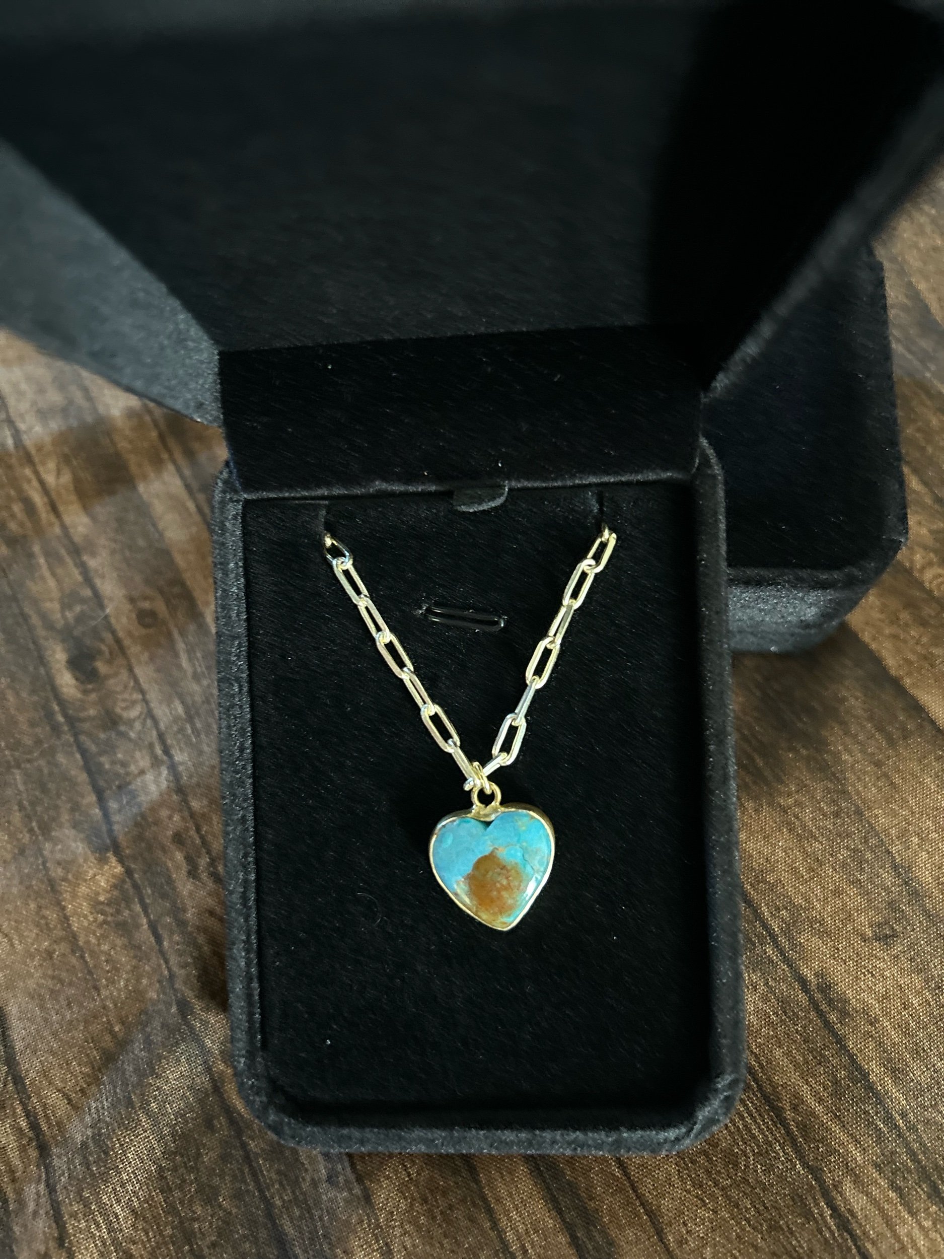 Kingman Turquoise Gold Plated (Gold Over Brass) Necklace. These are high quality necklaces with beautiful natural stone. These have a beautiful paper clip chain measuring LENGTH 16+2" and WIDTH 6/8".