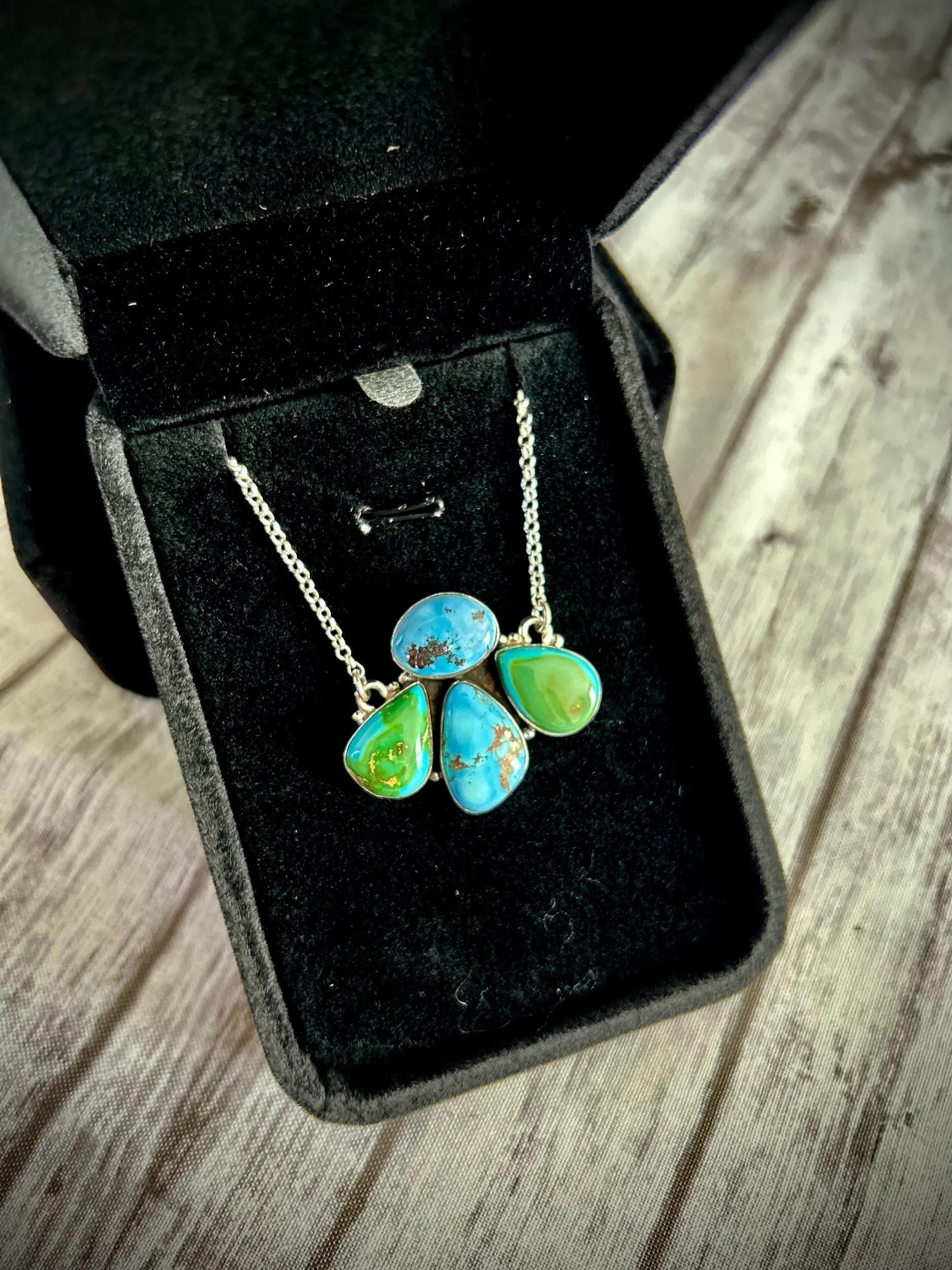Sterling Silver Golden Hills Turquoise, Sonoran Mountain TurquoiseNecklace. Necklace measures 16-18 inches long.